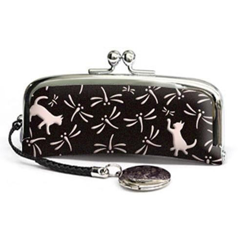 甲州印伝【勝招猫】 印章ケース(黒×白)