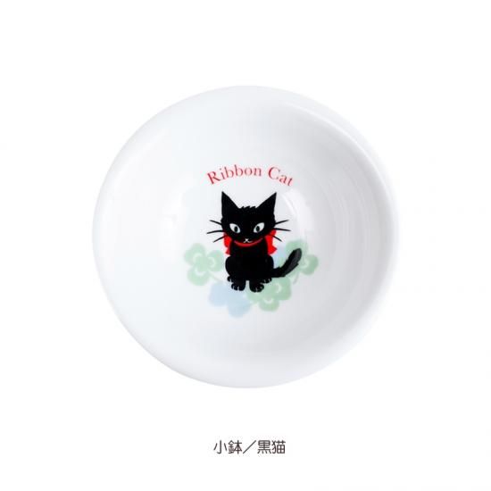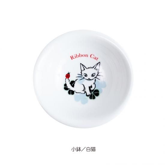 リボンキャットクローバー柄、やわらかな楕円形の小鉢です。