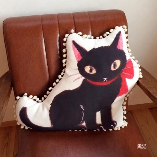 お部屋でアクセントになること間違いなしの、リボンキャットのダイカットクッションです。