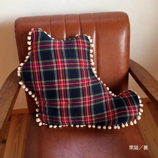 裏は、黒猫は赤系のチェック柄、白猫はブルー系のチェック柄で、フチにぽんぽんが付いています♪